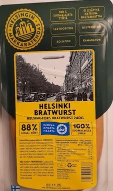 | 24.09.2020 | HMT Helsinki Bratwurst |  | (Suomi) | 88 | € 12.46 | Massa mukavan tuntuinen suussa, rasvaa löytyy, jotain punaista, jalopenoa? Rouheampi karkeampi rakenne, makuja paljon, mausteet hiukan epätasaisesti jakautuneet, mehukas, rasvaisuus varmasti suitsii runsaat mausteet miellyttävään muotoon, jälkimaku pitkä ja täyteläinen (K-Supermarket Hertta) |